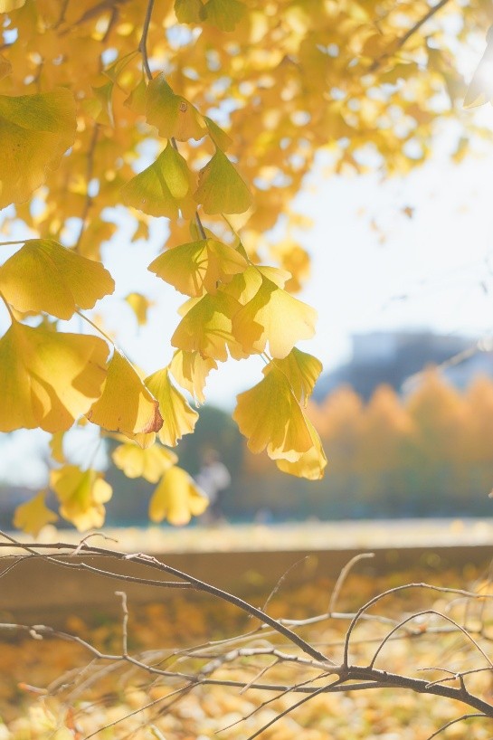 背景に見える銀杏のとんがりシルエットがとても印象的に見えたとあります。写真の色味も統一感があり、実に綺麗に撮れていて素晴らしい作品です。