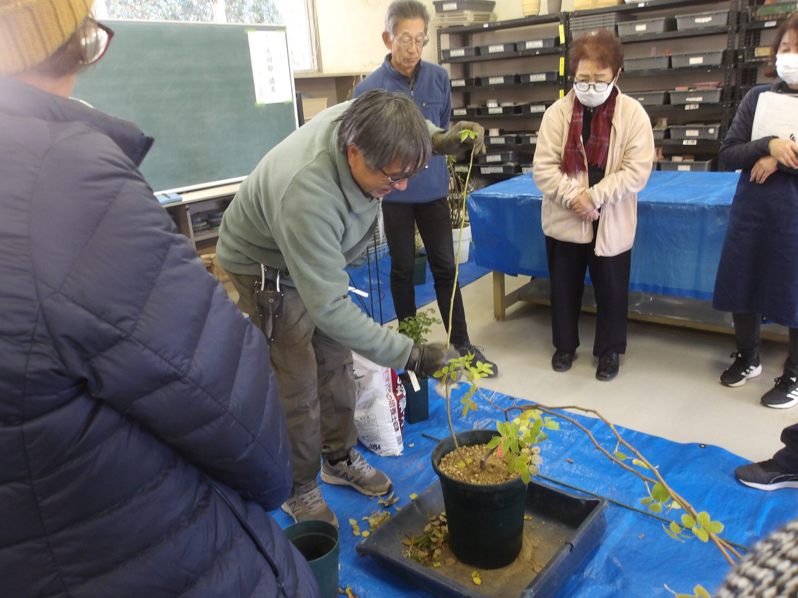 乱雑に絡み合った枝をきれいに整理して、春の花をたくさん咲かせる方法など実演を交えて学びます。
