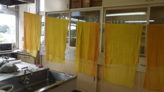 9月12日㈮勝田台公民館・調理室で勝田台公民館と合同開催の緑の講習会「自然の色を楽しむ草木染め」(講師 小髙孝夫)を開催しました。